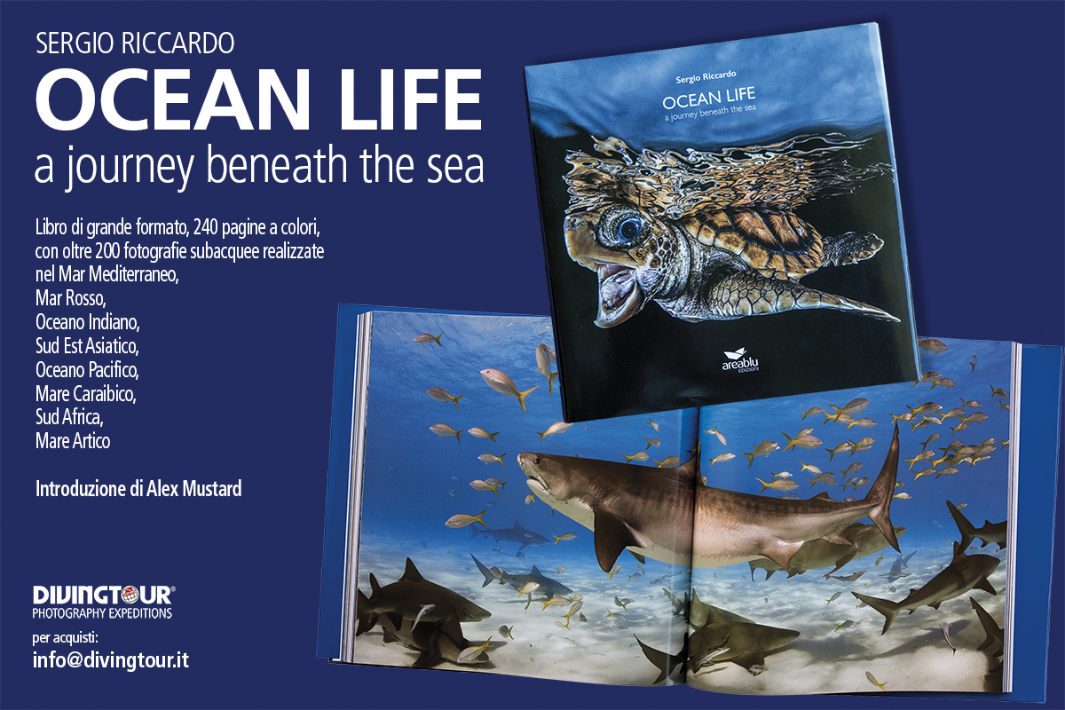 OCEAN LIFE è un libro di grande formato, 240 pagine a colori, con oltre 200 fotografie subacquee realizzate nel Mar Mediterraneo, Mar Rosso, Oceano Indiano, Sud Est Asiatico, Oceano Pacifico, Mar dei Caraibi, Sud Africa, Artico. Un vero e proprio "giro del mondo sott'acqua" realizzato da Sergio Riccardo in 35 anni d'attività. Prefazione: Alex Mustard.